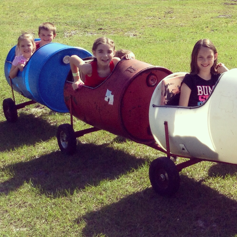 3 big bounce houses for the big kids plus a smaller one for the “littles.” Hay ride, train ride, face painting, photo booth and fun games.