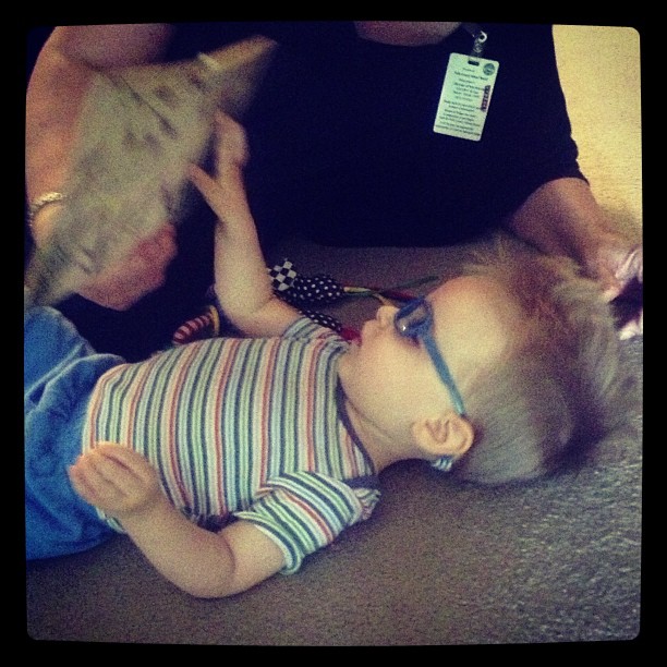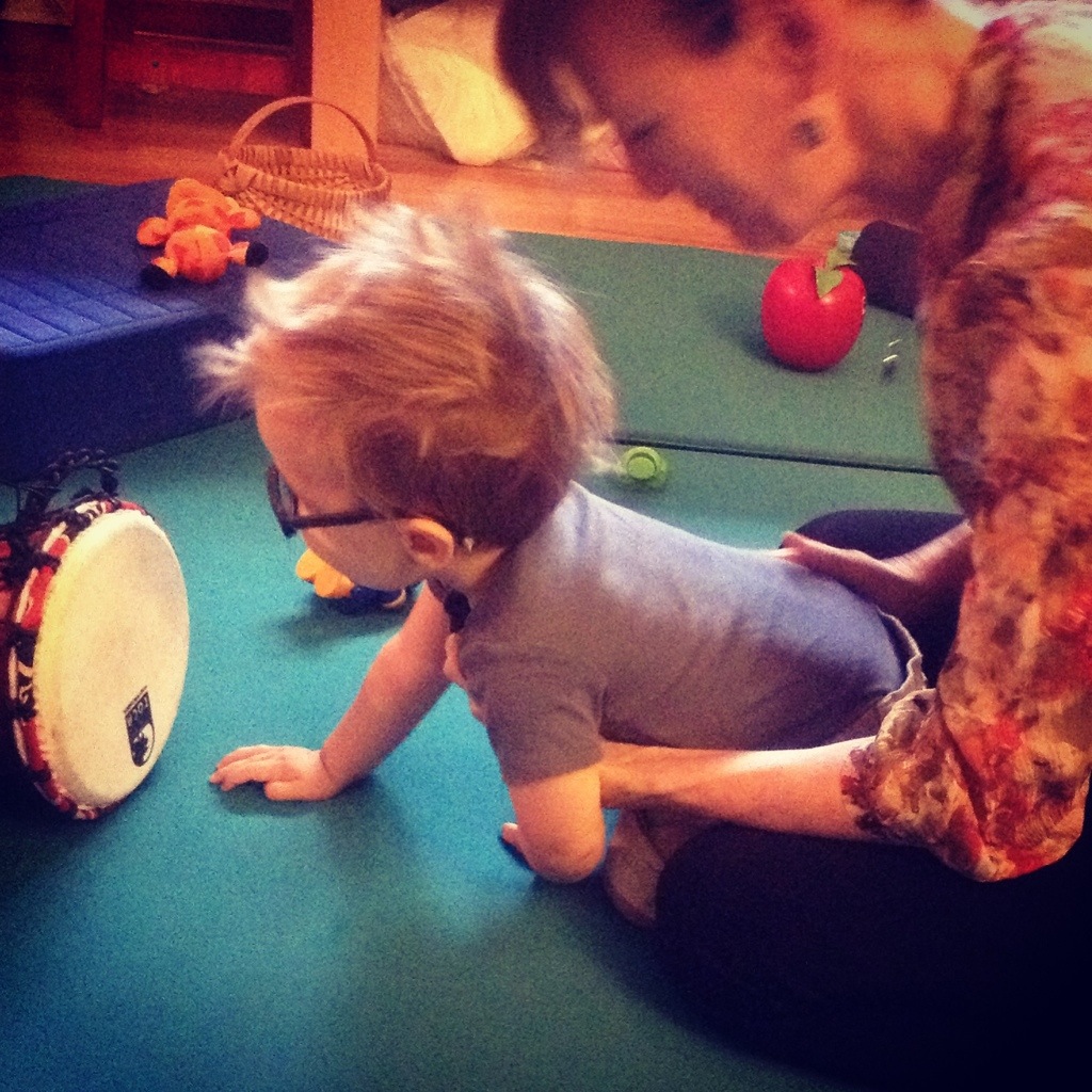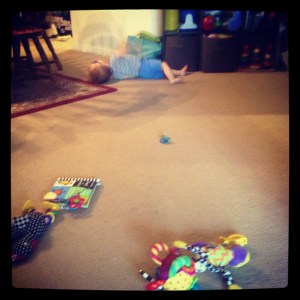 Last night when we returned home from Gainesville Judah was playing with his toys on the floor. He’d roll to his tummy and kick his legs to try to move. (Looked like a fish out of water- so cute!) He was acting frustrated that he wasn’t getting anywhere so I knelt down next to him and showed him how to move forward as he learned during his ABM sessions. As soon as I helped him move forward he was happy. This is the first time Judah’s shown enjoyment and desire to move like that. In the past we’ve forced him to move and crawl, but now it’s HIS desire and motivation.